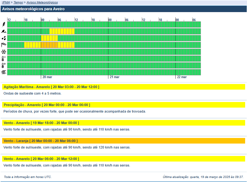 Tendo em conta a incerteza na evolução da depressão MARTINHO aconselha-se o acompanhamento das atualizações das previsões e dos avisos meteorológicos